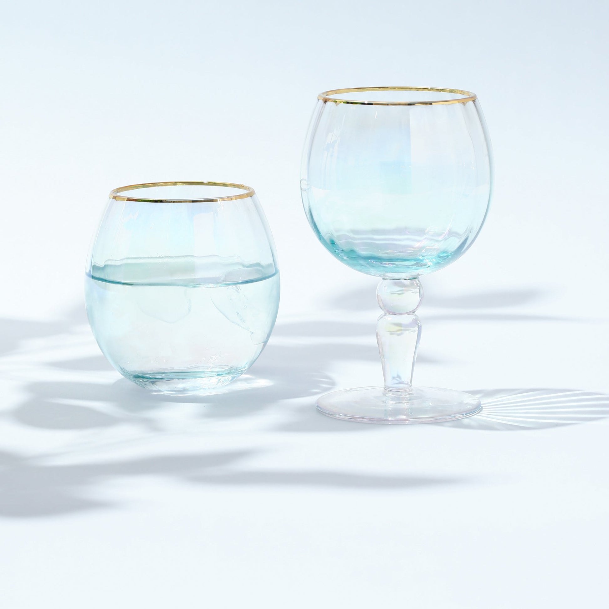 It is a glass tumbler with a gentle line on the surface called molding glass.The swaying shadows are expressive, and the beautiful shadows that fall on the table are also impressive. The aurora-like shimmering luster adds glamor to the table.